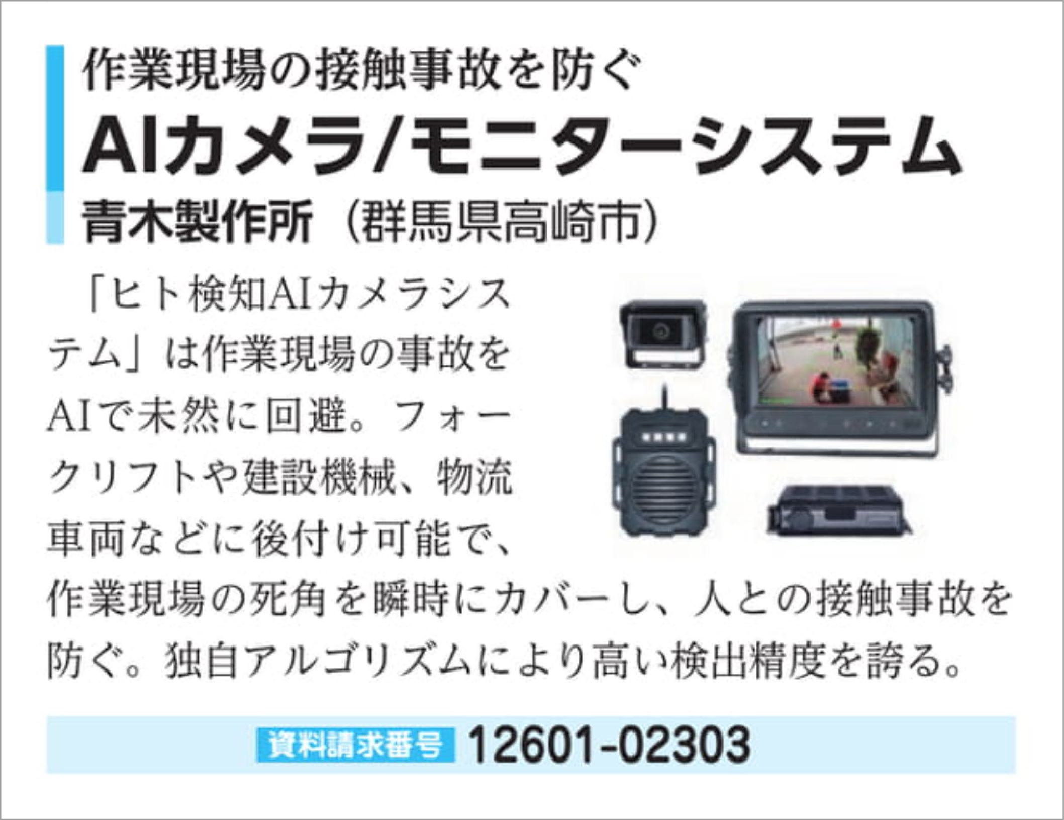 ▶ AIカメラ/モニターシステム/株式会社青木製作所|日刊工業新聞社